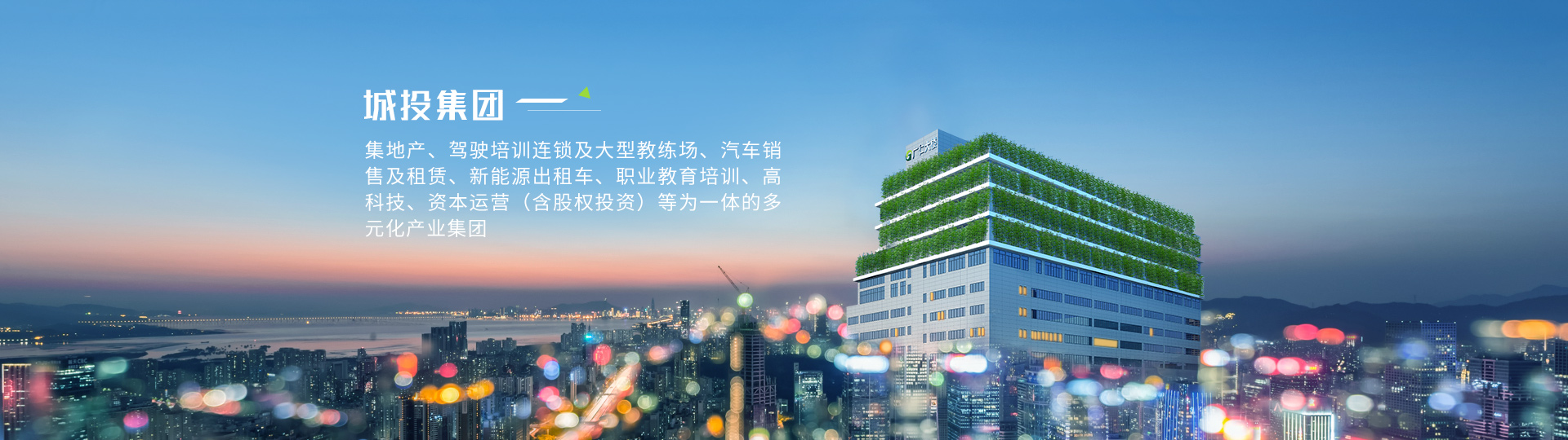 城投集團(tuán)堅(jiān)持“愛(ài)黨愛(ài)國(guó)、孝敬父母”的核心企業(yè)文化,主要業(yè)務(wù)為高科技、互聯(lián)網(wǎng)、基金投資、地產(chǎn)開(kāi)發(fā)、職業(yè)教育培訓(xùn)、駕駛培訓(xùn)、汽車(chē)銷(xiāo)售及租賃、出租車(chē)運(yùn)營(yíng)等。